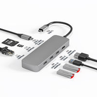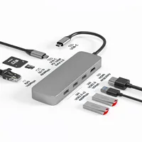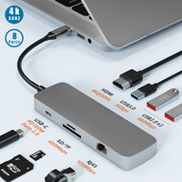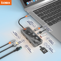 Basix 8 in 1 Type-C Docking Station USB-C Hub Splitter Adapter with USB3.0 USB-C PD 100W 4K HDMI RJ45 1000Mbps LAN Ethernet SD/TF Card Reader Slot for PC Computer Laptop – Grey