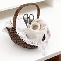 Rattan Storage Basket with Liner Cloth Cover Natural Woven Organizer for Closet Pantry Kitchen Bathroom Utility