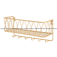 Creative Wall Shelf, Hook Finishing Wrought Iron Storage Shelf, Living Room, Bedroom, Bathroom, Study, Kitchen