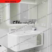 Pink Skin Sensor Oak French Bathroom Vanity Cabinet with Sink Mirror Integrated Ceramic Washbasin Combination Bathroom Furniture $1215.21