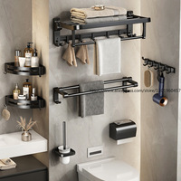 Hotel Modern Hanging Wall Mounted Towel Rack Black Storage Aluminum Multifunctional Bath Bathroom Shelf $449.69