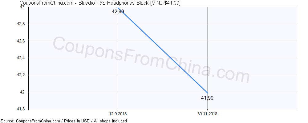 Price history (for all/most countries) for Bluedio T5S Headphones Black is here. The lowest price was: $41.99.