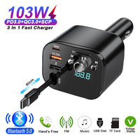 103W 3 IN 1 PD3.0 QC3.0 Retractable Phone Charger V5.0 Bluetooth Handsfree Car Kit FM Transmitter TF Card & U-disck Music Player $5.93