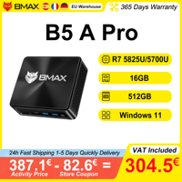 BMAX B5 A Pro Mini PC AMD Ryzen 7 5825U 8 Cores 16 Threads 16GB DDR4 RAM 512GB NVMe SSD Windows 11 BT5.0 HD 4K Triple Screen Display Mini Computer – EU Plug