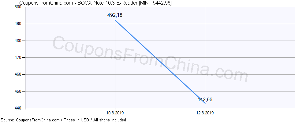 Price history (for all/most countries) for BOOX Note 10.3 E-Reader is here. The lowest price was: $442.96.
