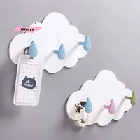 Cartoon Star Moon Cloud 4-Hook Non-Punching Wall Mounted Keychain Jewelry Bag Hanger for Bathroom Bath Ball Storage Rack
