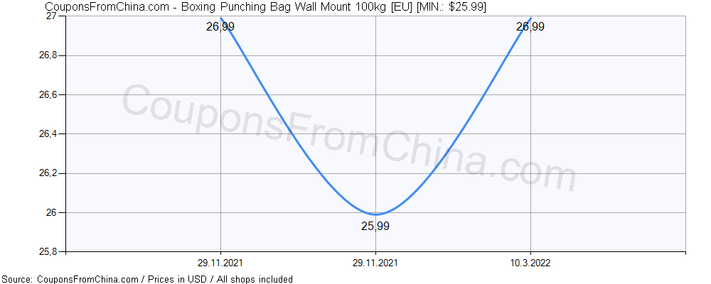 Here is price history (for all/most countries) for Boxing Punching Bag Wall Mount 100kg [EU]. The lowest price was: $25.99.