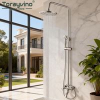 Torayvino Bathroom Faucets Set Nickel Brushed wall mounted Single Handle Shower Column Hot Cold Water Rainfall Shower System tap