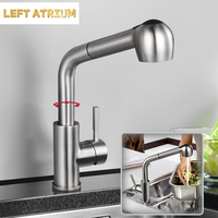 304 Stainless Steel Pull-out Kitchen Faucet Hot and Cold Mixed Water Washbasin Faucet Nickel Rotary Kitchen Sink Tap