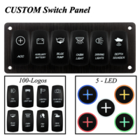 CUSTOM 6 Gang Aluminum Rocker Switch Panel Wired With 12V 20A Waterproof IP 68 LED Rocker Switches For Boat Caravan Polaris Car