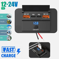 4 in 1 Panel PD QC3.0 USB Car Charger LED Voltmeter Cigarette Lighter Socket Power Outlet Toggle Switch for Truck Car Boats RV