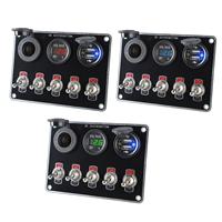12V 24V Car Switch Panel 2/3 Gang Waterproof Light Toggle Control Digital Voltmeter Dual USB Chargers Ports Outlet Combination