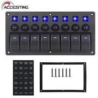 Waterproof Rocker Switch Panel with Blue LED Light 2 to 8 Position for Marine Car Boat RV DC 12V 24V Compatible System