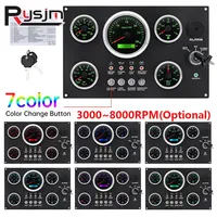 7 Color LED Gauge Set with Instrument Switch Panel 52mm Water Temp+Fuel+Oil Press+Voltmeter+85mm Tachometer For Marine Boat Car