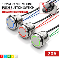 FILN 2/5PCS 19mm 20A Metal Push Button Switch IP67 Waterproof Latching/Momentary Marine Button Switch for Car Boat Control Panel