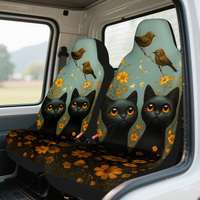 2pcs Halloween Black Cats Floral Car Seat Cover Set – Fit, High-Quality Full Front Seat Protectors, Durable And Stylish Design,