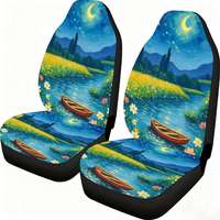 2pcs Van Gogh Starry Night Inspired Car Seat Covers – Front Seat Protectors with High Back Design Non-Padded
