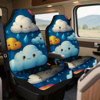2pcs Happy Cartoon Clouds Print Car Seat Covers – Front Seat Protectors For Cars, SUVs & Sedans, Easy To Install, Durable Desig