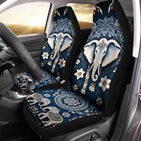 Boho Flower Elephant Car Seat Protectors Covers 2Piece Elephant Automotive Interior Set Animal Auto Front Seats Covers