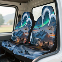 2pcs Winter Wildlife Car Seat Covers – Arctic Wolf & Northern Lights Design, Durable Polyester Front Seat Protectors, Easy Insta