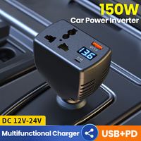 Universal 150W Car Power Inverter DC 12V 24V to 110V 220V USB Type C Charger Auto Truck Vehicle Adapter Fast Power Supply