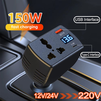 150W Car Power Inverter DC12V/24V to AC110V/220V with LED Display Sockets Fast Charging for Automobiles
