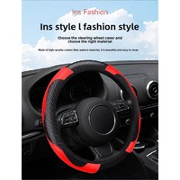 Carbon Fiber Leather Car Steering Wheel Cover 37-38CM Non-slip Wear-resistant Sweat Absorbing Fashion Steering Wheel Cover $11.75