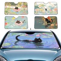 Cartoon Cat In Lotus Leaf Car Sunshade Curtains Windscreen Front Window 70x130cm Sun Visor Solar Protect Plaid Gift Novelty Car $9.10