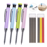 Solid Carpenter Pencil Set Deep Hole Marking Tool 3Color Refill Mechanical Pencil Cap Carpentry Marking Scriber Woodworking Tool $2.83