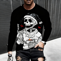 New Christmas Style Skull Graphic T Shirt For Men Funny Printed Long Sleeve Tees Trendy Men’s Clothing Spring Autumn Casual Tops