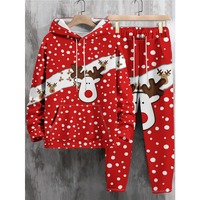 Christmas Pattern 3D Printed Hoodie Top Pants Combination Two Piece Set Spring and Autumn Festival Gift Selection