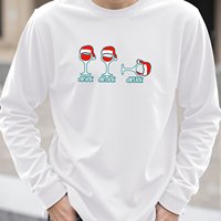 Christmas Wine Glass Print Men’s T-shirt Spring Autumn Casual O-neck Loose Long Sleeve Tops Fashion New Year X’mas Clothing Tees