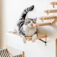 Wall Mounted Solid Wooden Furniture Set Cat Climbing Frame Hammock Scratching Post Shelf with Sisal Jumping Platform Ladder Step $35.41