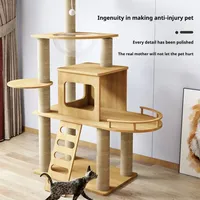 Cat climbing frame Solid wood sisal wear-resistant cat scratching board nest Integrated cat scratching column hammock nest $32.40