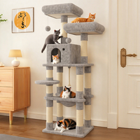 Cat scratching board cat climbing frame 153 cm high with cat hole hammock cat climbing tree plush brown cat tree cat tower $95.84