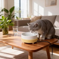 Ceramic Pet Water Dispenser with Constant Temperature Heating, Anti-Spill Cat Dog Water Bowl, Automatic Drinking Fountain
