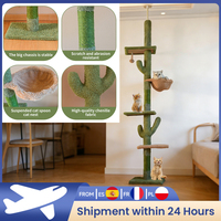 Adjustable Indoor Cat Climbing Frame Cactus Tall Climbing Tree With Scratching Post And Hammock Strong Load-Bearing Capacity $48.21