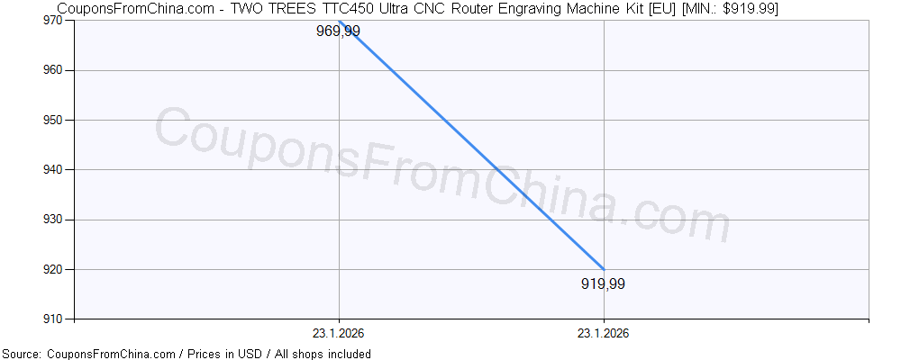 ![TWO TREES TTC450 Ultra CNC Router Engraving Machine Kit [EU] price history Price history for TWO TREES TTC450 Ultra CNC Router Engraving Machine Kit [EU]](https://couponsfromchina.com/pricehistory/History55288.png)