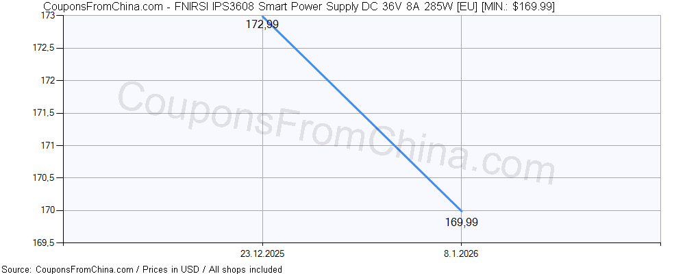 ![FNIRSI IPS3608 Smart Power Supply DC 36V 8A 285W [EU] price history Price history for FNIRSI IPS3608 Smart Power Supply DC 36V 8A 285W [EU]](https://couponsfromchina.com/pricehistory/History55104.png)