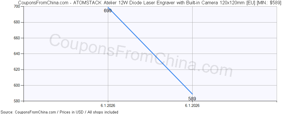 ![ATOMSTACK Atelier 12W Diode Laser Engraver with Built-in Camera 120x120mm [EU] price history Price history for ATOMSTACK Atelier 12W Diode Laser Engraver with Built-in Camera 120x120mm [EU]](https://couponsfromchina.com/pricehistory/History55195.png)