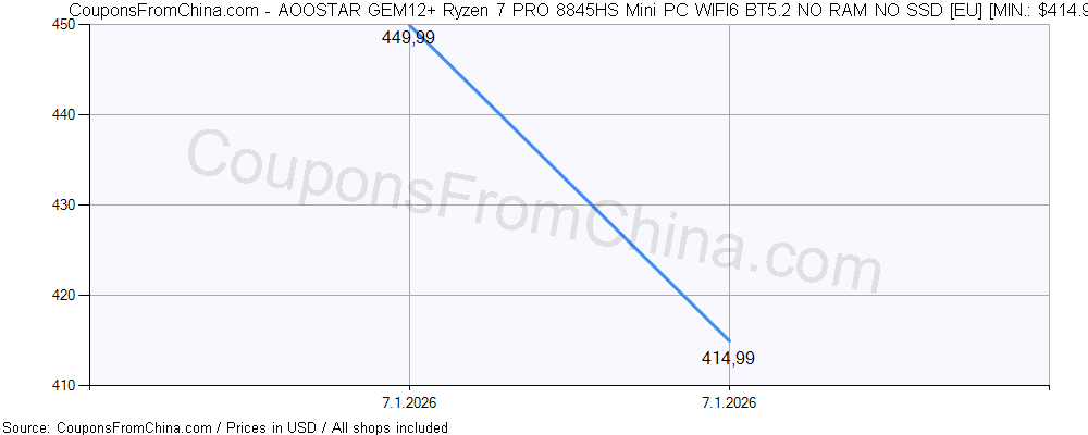 ![AOOSTAR GEM12+ Ryzen 7 PRO 8845HS Mini PC WIFI6 BT5.2 NO RAM NO SSD [EU] price history Price history for AOOSTAR GEM12+ Ryzen 7 PRO 8845HS Mini PC WIFI6 BT5.2 NO RAM NO SSD [EU]](https://couponsfromchina.com/pricehistory/History55198.png)