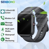 Senbono V35 2.01-inch HD Screen LED Flashlight 1100mAh Massive Battery Compass Voice Assistant bluetooth Call Heart Rate Blood Oxygen Monitor Sleep Monitoring Multi-sport Modes IP68 Waterproof Smart Watch – Black