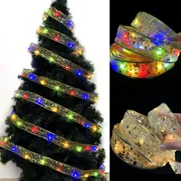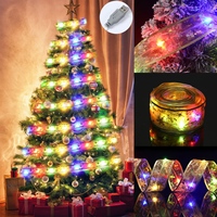 Christmas Tree Decoration Ribbon LED String Lights Christmas Tree Decoration Ribbon Led Light String Lights With Holiday Gift Box Bow Satin Copper Wire Lights – 10M