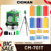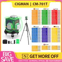 CIGMAN CM-701T 3×360° Laser Level with 1.5m Tripod, Remote Control, Self-Leveling, 4000mAh Battery, High Visibility, Rechargeable, Manual Mode, ±1.5mm/5m Leveling Accuracy, 30m Working Distance (Line)