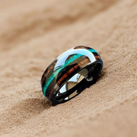 8Mm Black Tungsten Ring for Men Women Engagement Wedding Ring Fashion Jewelry Green Opal Koa Wood Inlay Comfortable Fit