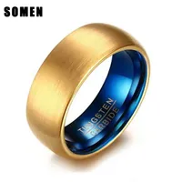 Somen Men’s Blue Tungsten Ring Classical Gold-color Rings Men Tungsten Jewelry Luxury Wedding Band