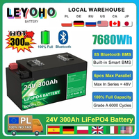 LiFePO4 24V 300Ah 7.68Kwh Battery Pack 6000+ Cycles 8S Bluetooth BMS 25.6V 100Ah 200Ah 340Ah Home Solar Lithium Battery EU STOCK