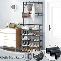 Clothes Hanger Multi-Layer Shoe Sneakers Rack Floor Standing Coat Rack Assemble Cloth Storage With Hooks Multifunction Organizer
