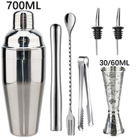 Stainless Steel Cocktail Shaker Set Mixer Bartender Kit Cobbler Boston Shaker Bars Set Tools Jigger Mixer Muddler Pourer Spoon $22.64