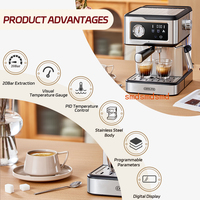 2024 New Arrival Hot Selling 20 Bar ULKA Pump 1500W With Pressure Gauge,with Time Display Semi-automatic Coffee Machine